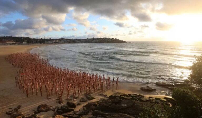 ত্বকের ক্যান্সার নিয়ে সচেতনতা বাড়াতে সিডনির বন্ডাই বীচে একসাথে নগ্ন হয়ে ছবির জন্য পোজ দিয়েছেন প্রায় আড়াই হাজার মানুষ।